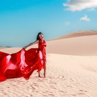 Turn your dream photo shoot into reality with our flying dress photography. Whether on a scenic beach, a dramatic cliffside, or another stunning location, we’ll capture you in a flowing dress that adds movement, style, and magic to every photo.